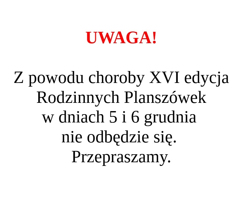 Z powodu choroby XVI edycja Rodzinnych Planszówek